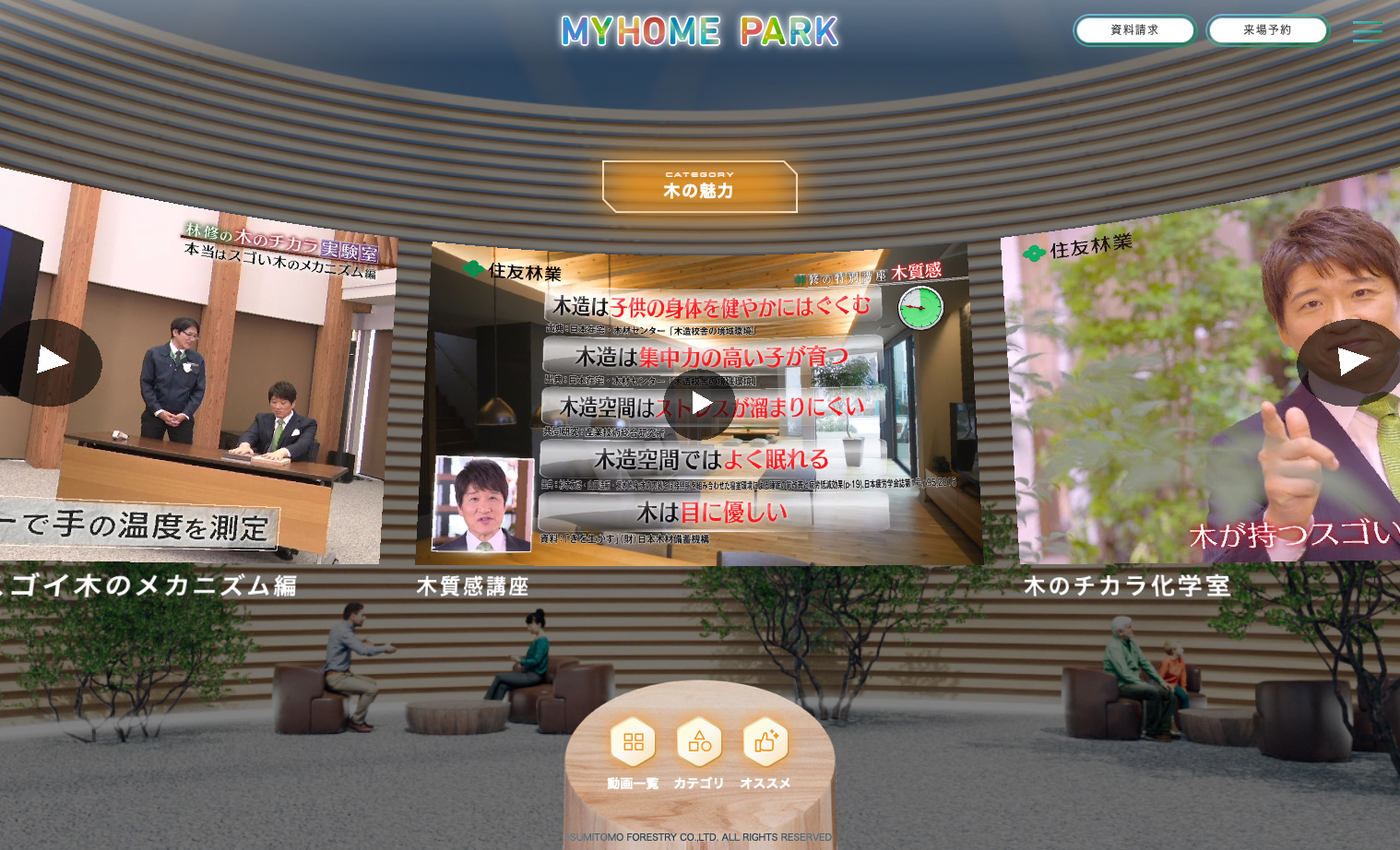住友林業の特徴や木の魅力など、住まいづくりに役立つ動画をご覧いただけます。