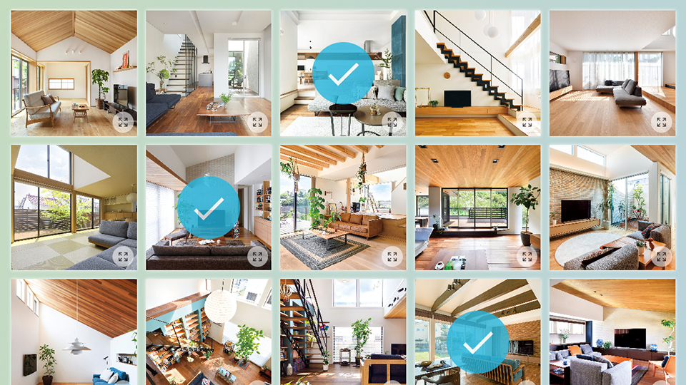 「いいな」と思った画像を選ぶだけで、あなたの住まいのこだわりポイントを具体化。住まいづくりがぐっとイメージしやすくなるヒントが見つかります。